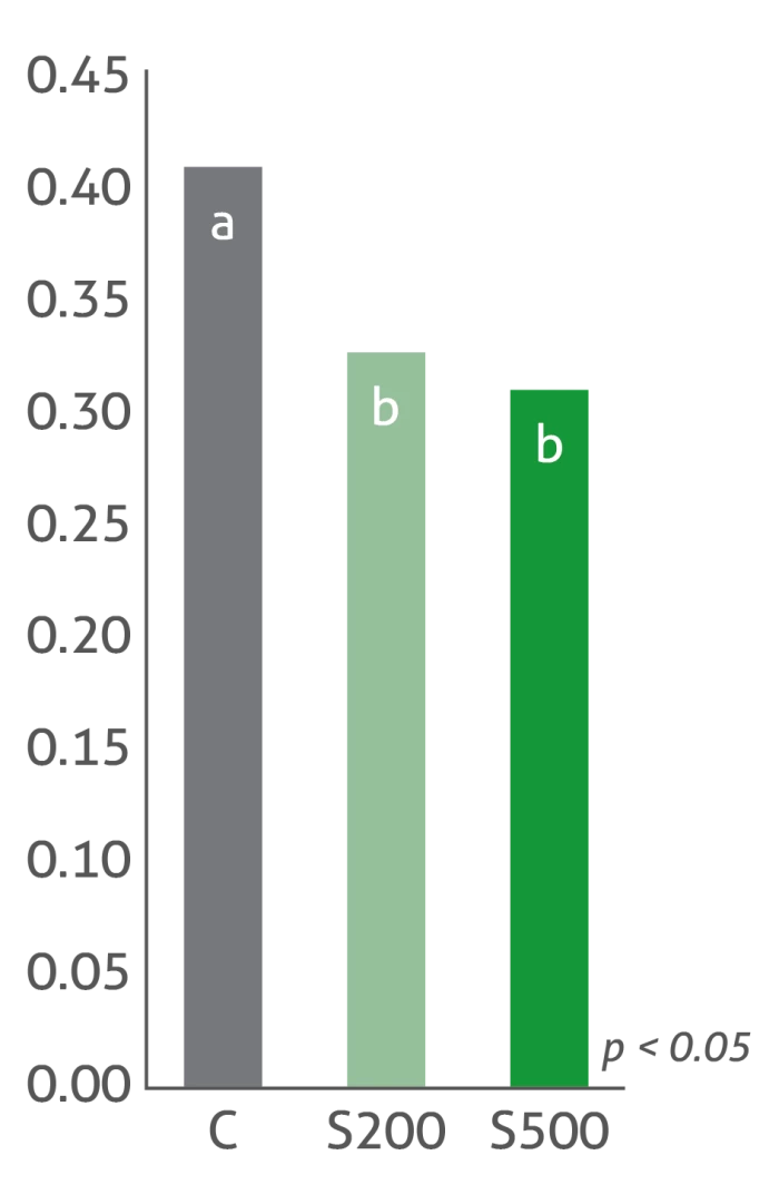 Treatment groups: C: Control | S200: Sangrovit® 200 g/t | S500: Sangrovit® 500 g/t
