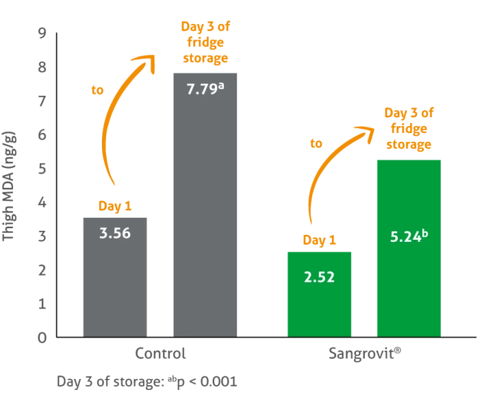 • Improved antioxidant status (malondialdehyde) of meat, that was stored in a fridge for 3 days